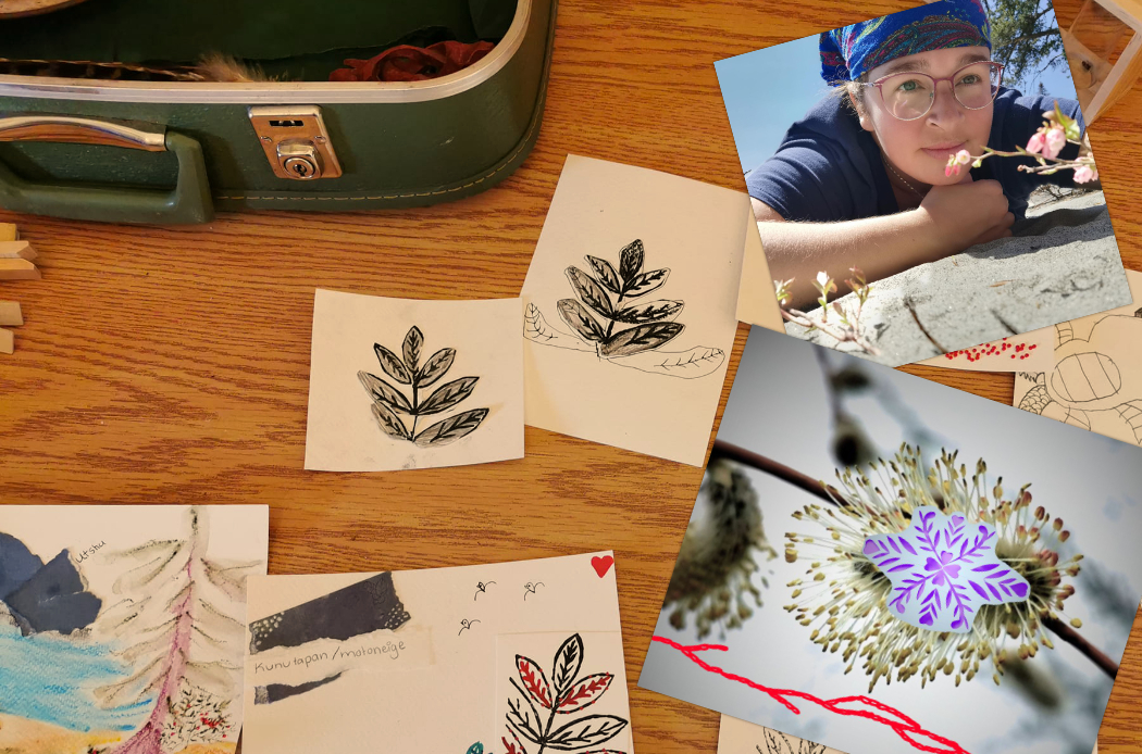 Amélie Courtois, artiste atikamekw et ilnue, invite les jeunes à partager son univers créatif inspiré de la nature et de sa culture. Sa petite valise regorge de découvertes du Pekuakami et de ses promenades en forêt : photos, estampes, papier teint au jus de bleuet… Plein d’éléments à explorer pour créer de magnifiques collages!